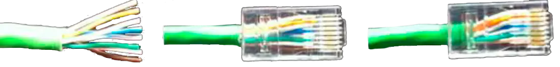 Una vez recortados e igualados, cogemos el conector e introducimos los pares, de tal manera que el pin 1 (el naranja) nos quede a la izquierda del todo si miramos el conector con la pestaña hacia abajo. Antes de introducirlos hasta el fondo, volvemos a comprobar que el orden es el correcto, por si acaso algún cable se movió de sitio. Si todo va bien, los introducimos hasta el fondo. Llegados a este punto tenemos que comprobar que los cables llegan hasta el final del conector y que el plástico que recubre a los pares llega a una especie de pestaña interna donde queda fijado para que no se suelte después. |