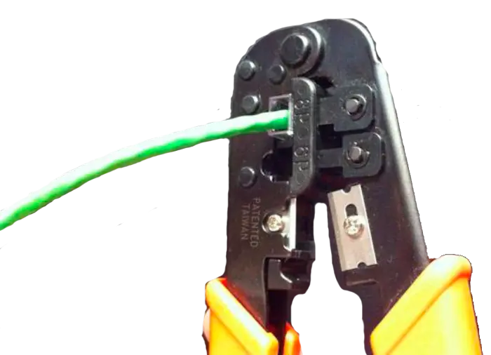 clavija RJ-45 en el hueco de la crimpadora y apretamos